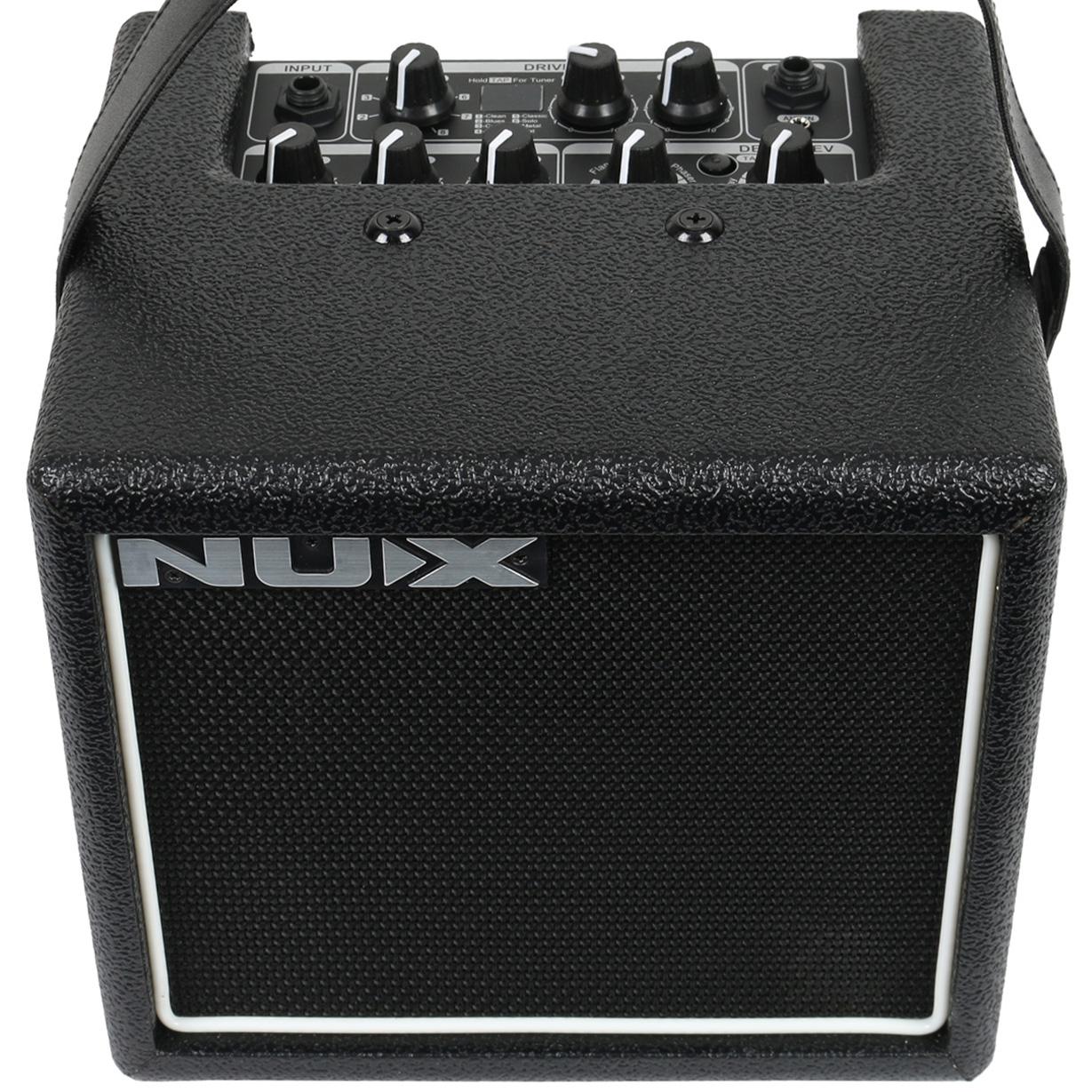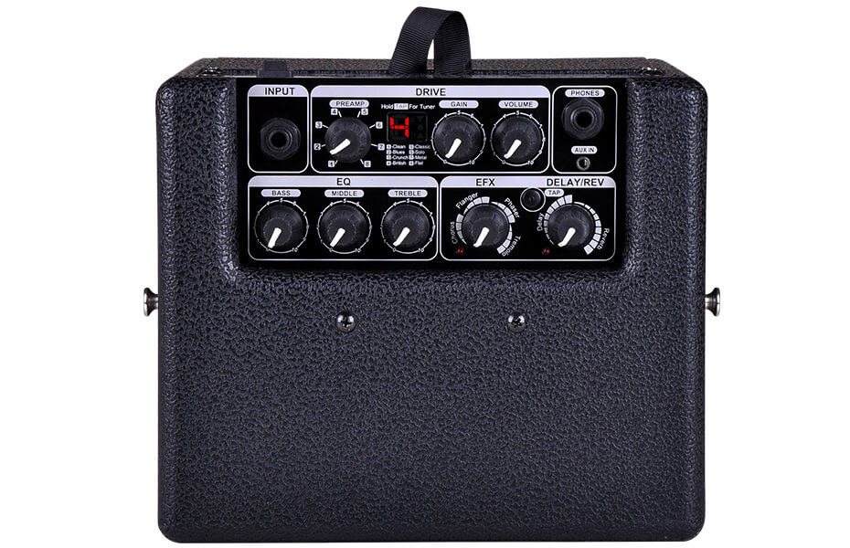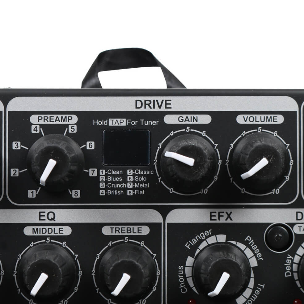 מגבר גיטרה העובד על סולללות עם הדמיית פרה אמפים ואפקטים מובנים של Nux
