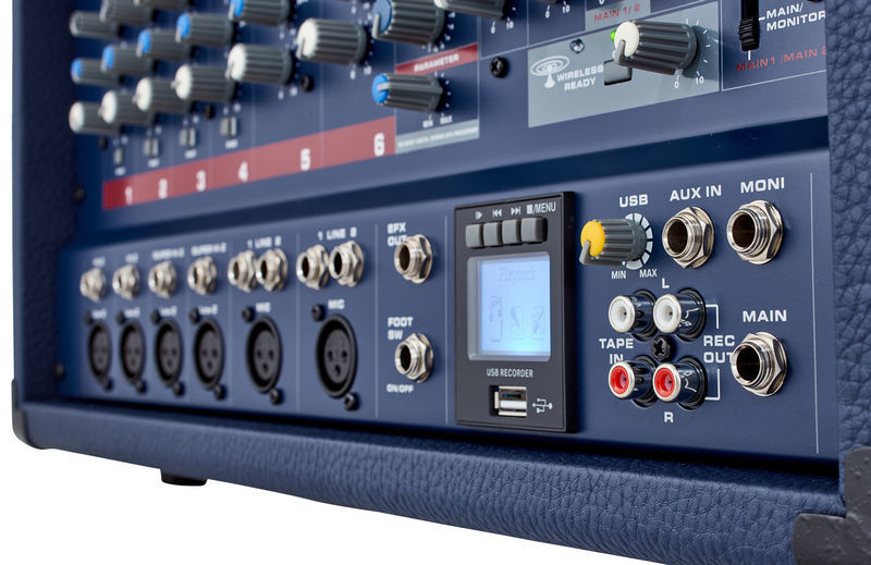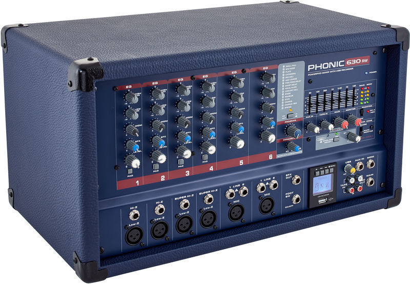 מיקסר מוגבר (בידורית) עם 6 כניסות ואפשרות הקלטה והשמעה מדיסק און קי ועוד של Phonic