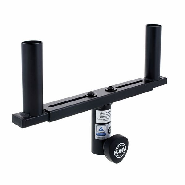 תושבת אוניברסלית המאפשרת הצבת זוג רמקולים על סטנד רמקול 35 מ״מ בודד של Konig & Meyer