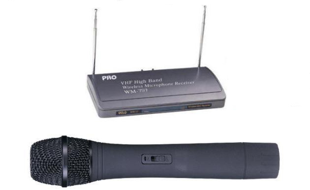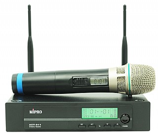 מקלט דו ערוצי UHF עם זוג מיקרופונים אלחוטיים ידניים של Mipro