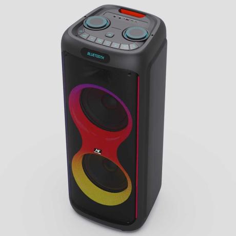 בידורית נטענת מקצועית המאפשרת כ – 6 שעות עבודה, מגיעה עם זוג מיקרופונים אלחוטיים (UHF) של JBL