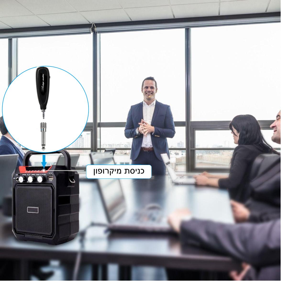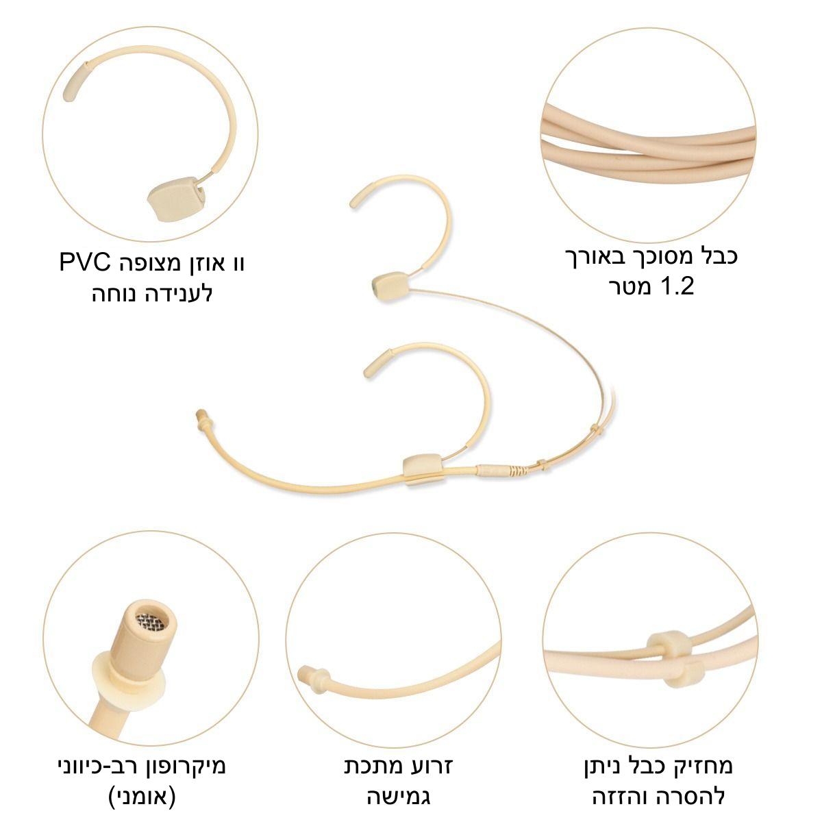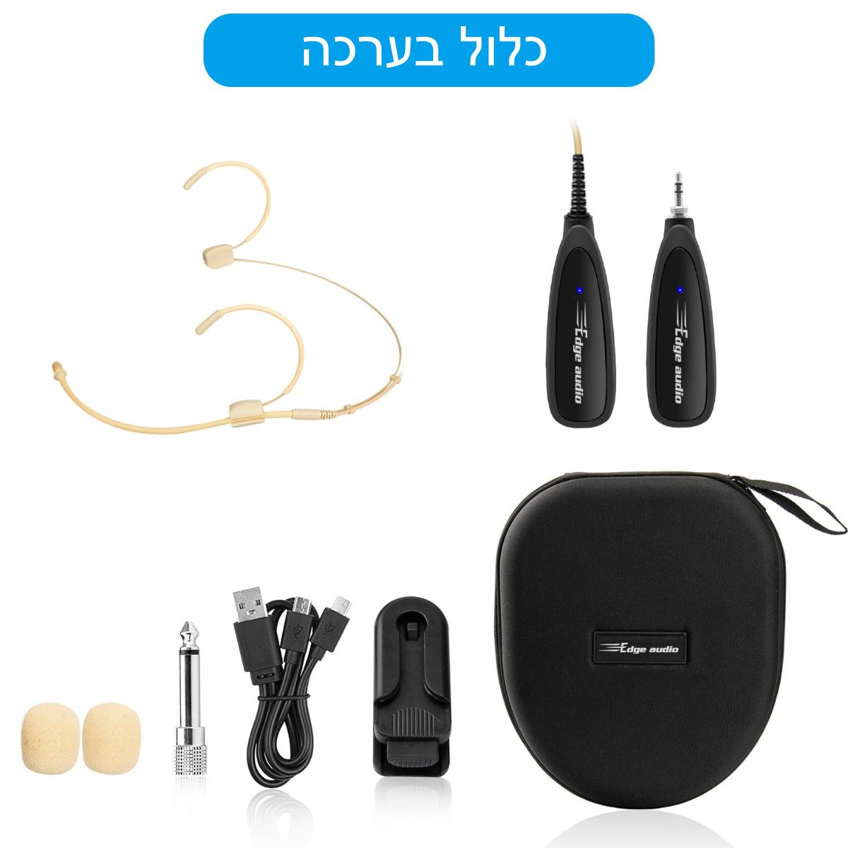מערכת מיקרופון אלחוטי זעירה למדריכי ספורט הכוללת משדר 2.4Ghz, מיקרופון ראש ומקלט זעיר של EDGE-AUDIO