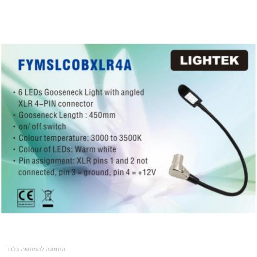 מנורת עבודה עם צוואר גמיש, מחבר XLR זוויתי עם 4 פין 12 וולט של LIGHTEK