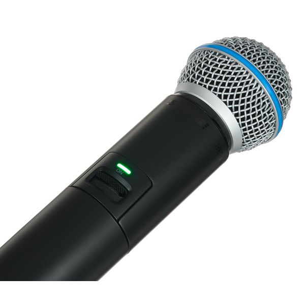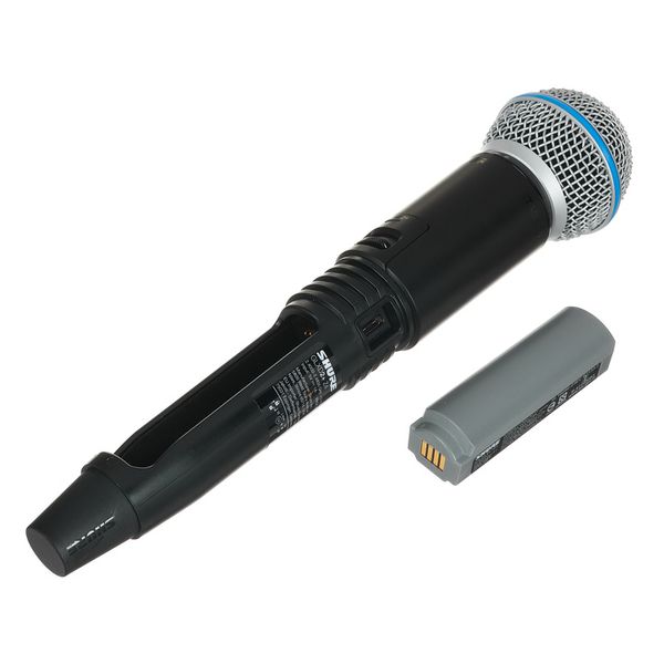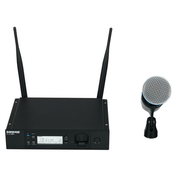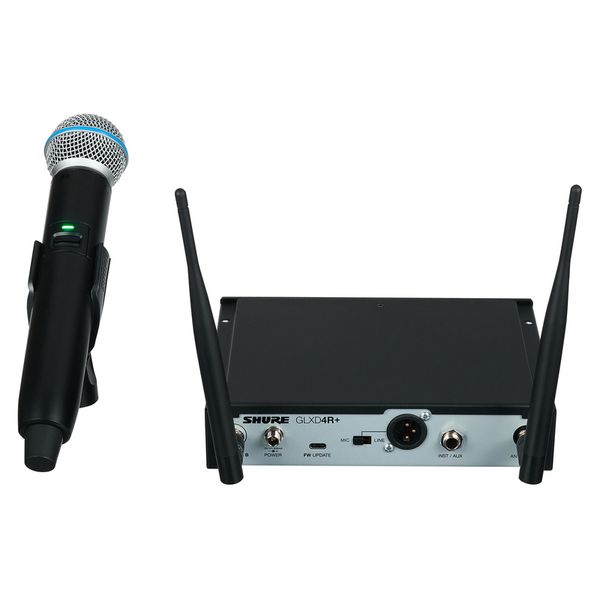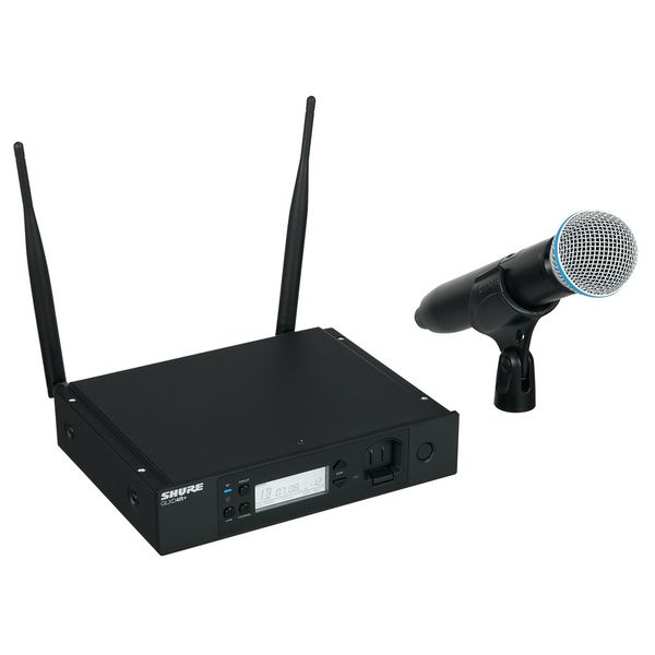 מערכת אלחוטית הכוללת משדר ידני ומקלט בתדרים – 2.4 / 5.8 גיגה הרץ עם מיקרופון Beta58, אנטנות מתפרקות ועגינות לראק של Shure