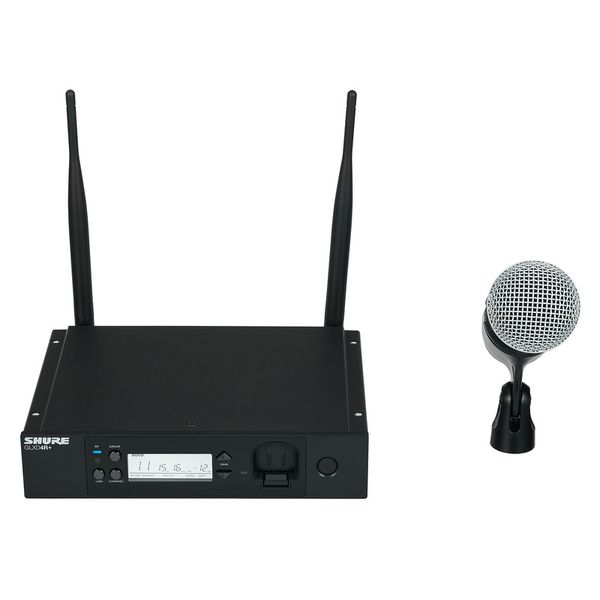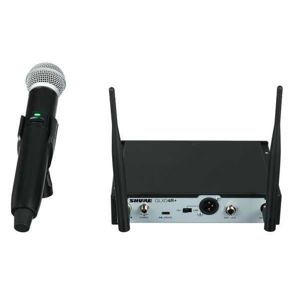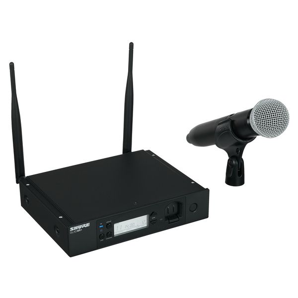 מערכת אלחוטית הכוללת משדר ידני ומקלט בתדרים – 2.4 / 5.8 גיגה הרץ עם מיקרופון SM58, אנטנות מתפרקות ועגינות לראק של Shure