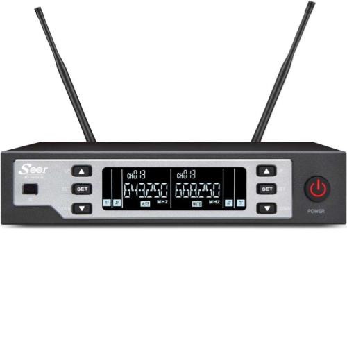 זוג מיקרופוני ראש אלחוטיים בתדרי UHF עם מקלט כפול של SEER