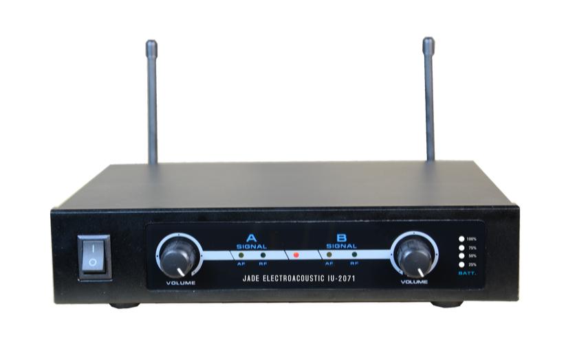 IU-2071 זוג מיקרופונים אלחוטיים ידניים עם מקלט נטען, קומפקטי דו ערוצי של Jade