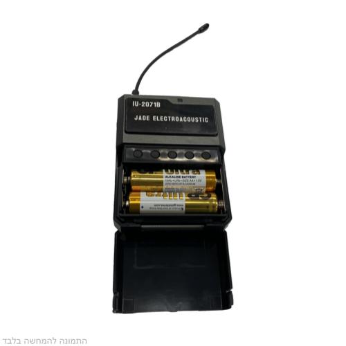 מערכת מיקרופון אלחוטי הכוללת משדר חגורה, מיקרופון ראש (מדונה) ומקלט בתדר 507.4MHz של Jade