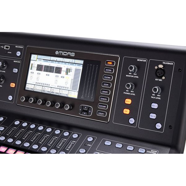 מיקסר דיגיטלי עם פרה אמפ Midas Pro, יכולת שליטה על 40 ערוצי כניסה, 24+1 פיידרים ממונעים, יכולות הרחבה מרובות של Midas