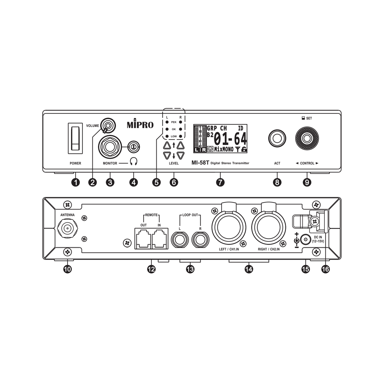 בית » חנות » MI-58T משדר סטריאו דיגיטלי בתדרי – 5.8GHz למוניטור IEM של MIPRO