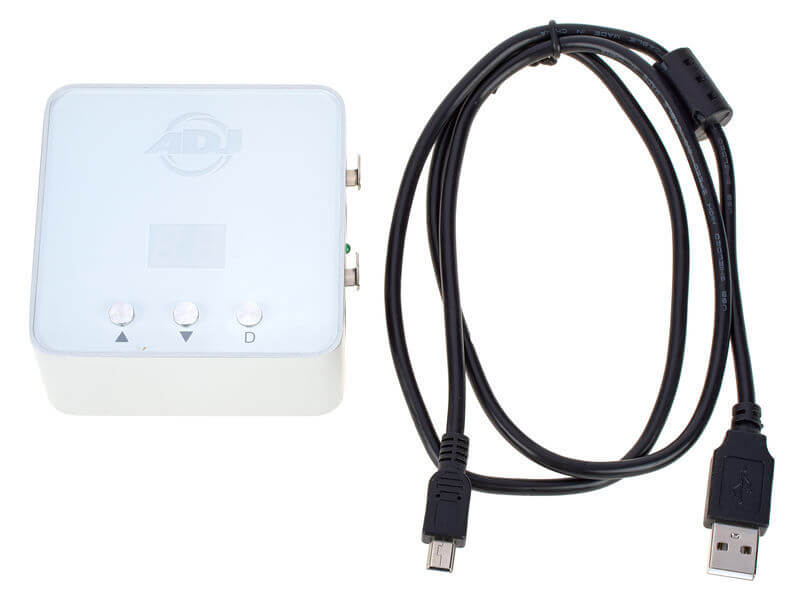 ממשק DMX – USB מאפשר שליטה על מערכות תאורה מהמחשב האישי, מגיע עם תוכנת הפעלה חדישה (להורדה) של ADJ