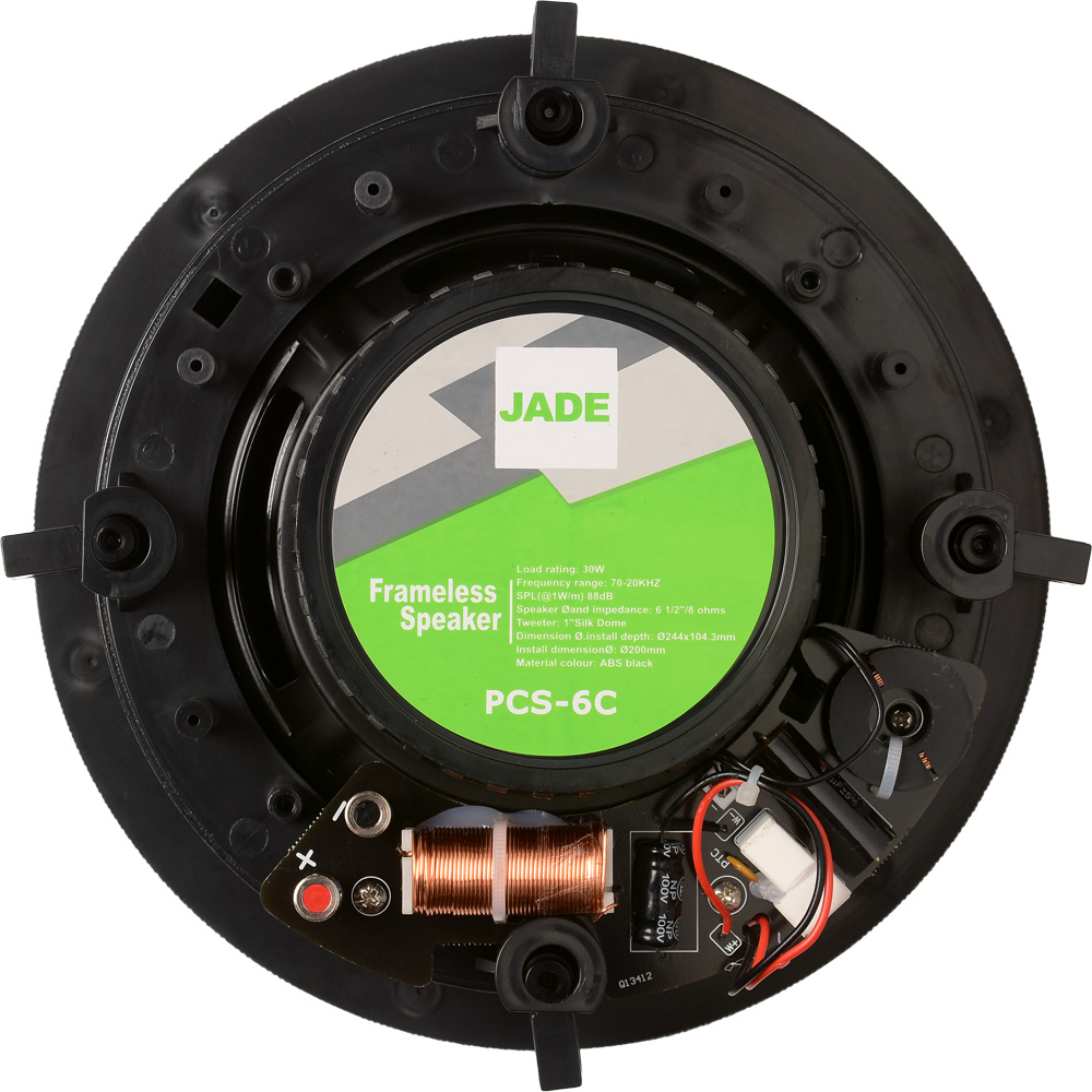 רמקול קיר/תקרה שקוע עם וופר בקוטר 6.5 אינץ’ ללא מסגרת יעודי להתקנות קבע, אידיאלי למסעדות, באיכות גבוהה.