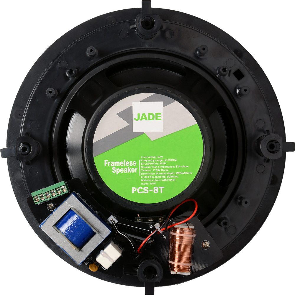 רמקול קיר/תקרה שקוע עם וופר בקוטר 8 אינץ’ ללא מסגרת עם שנאי קו הספק מתחלף- יעודי להתקנות קבע, אידיאלי למסעדות, באיכות גבוהה.