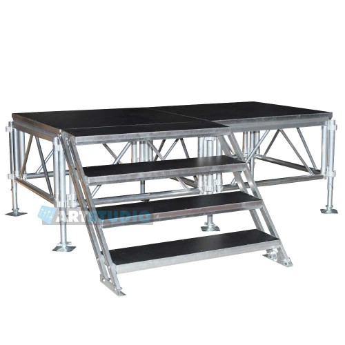 סט במה ניידת, מתקפלת, מודולרית בגודל 120 על 240 ס״מ שמגיעה עם 4 רגליות מתכוונות בגובה 60 עד 120 ס״מ. של Speed Truss_x000D_